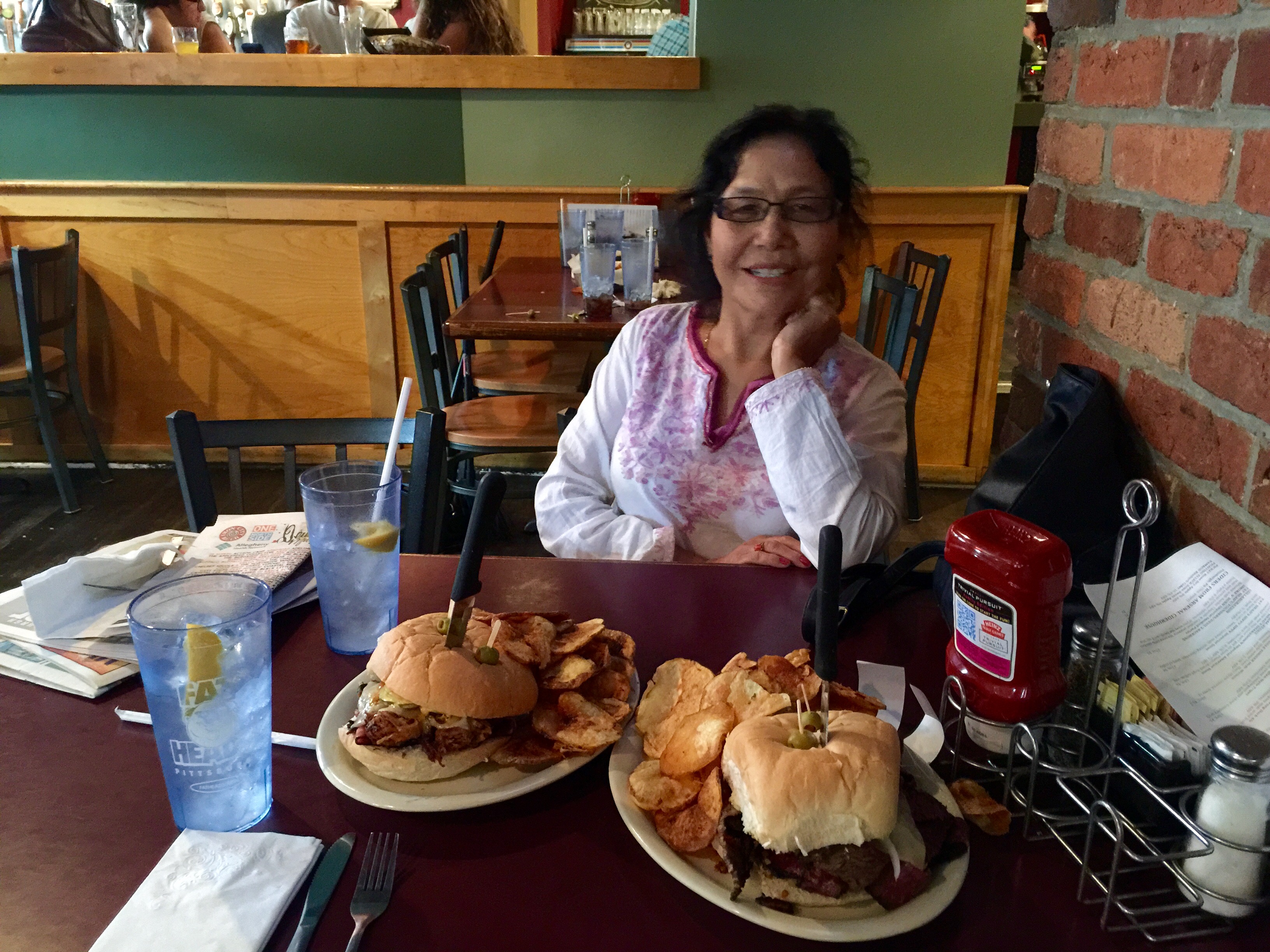 The real highlight, though, was an outrageous lunch we ate at Fat Heads, a local saloon that features “headwiches” — sandwiches as big as a person’s head. We saw it recommended on both the Roadfood and Food Network sites.