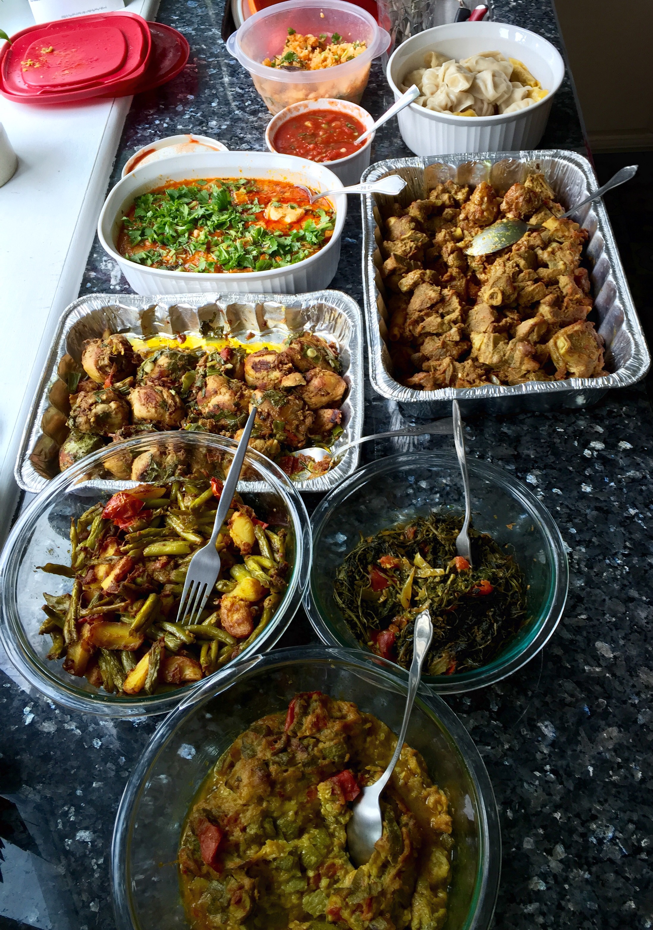 When we visited yesterday, Shashi cooked one of her amazing meals. (I’ll be disappointed in my foodie friends back in Durham if they don’t post some comments about the spread she laid out, shown in the top photo.)