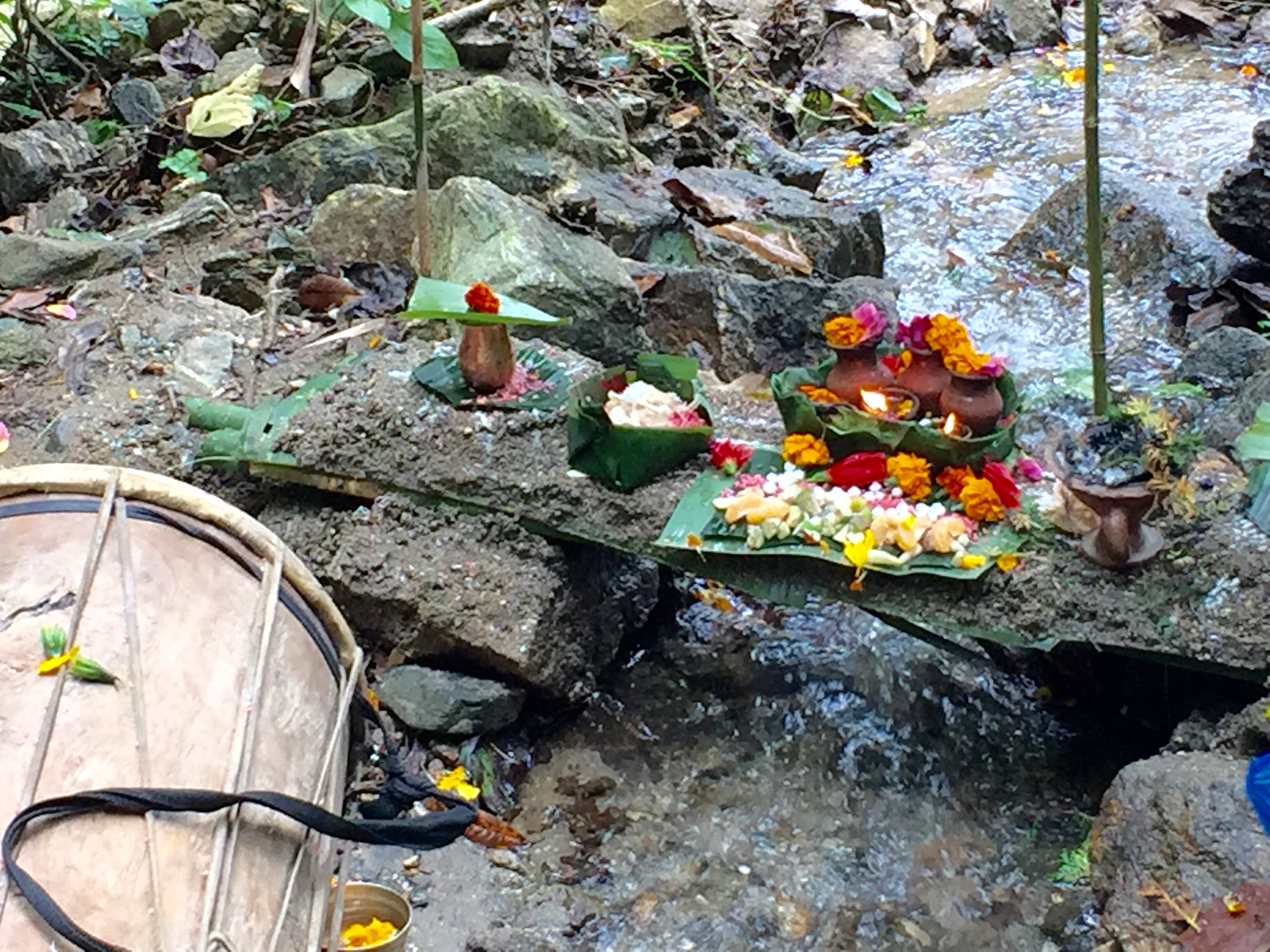 Here’s how it works: You sit at a table with your hands raised in front of you. The tika-giver uses his or her thumb and finger to apply a dab to your forehead, then places jamara — yellowish rice plant shoots — behind your ear or on your hair. While doing this, they chant blessings for your happiness and future.