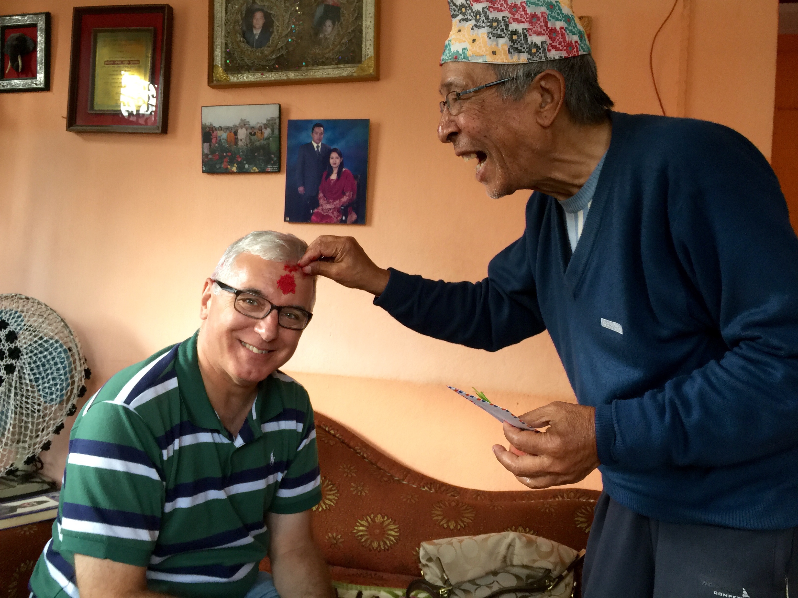 This year I gave someone a Dashain tika for the first time, as you can see here. That’s Mamata, whose mother Usha, gave me a tika just a moment earlier. I watched Usha didi’s technique carefully but, even so, was relieved that I didn’t screw up and commit some religious faux pas.