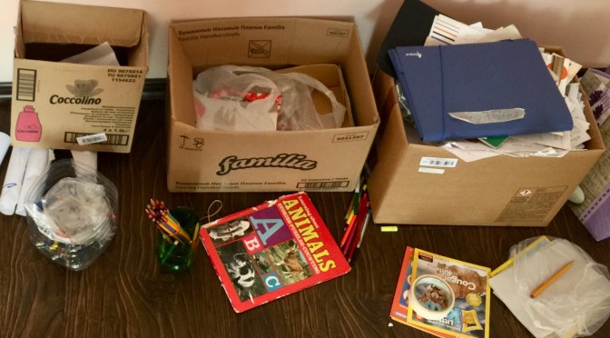 Now we’re going through a similar process anew, sifting through boxes of language materials, teaching materials, tourist brochures, souvenirs and other things we’ve accumulated during the past two years. Once again we’re making three piles: “Keep,” “Give Away” and “Trash,” plus some books and other things we need to “Return” to Peace Corps or our work sites.