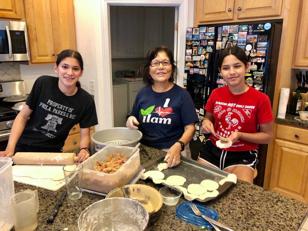 Champa and I have sriracha sauce in our cupboard, mango kefir in our refrigerator and phyllo in our freezer. They’re as normal to us as Nepali food is to my sons and their families. When they visit, they look forward to eating curried chicken, lentils, vegetables and rice. The only question is whether Champa will also prepare momos, Nepal’s delicious dumplings (as she’s doing in the photo).