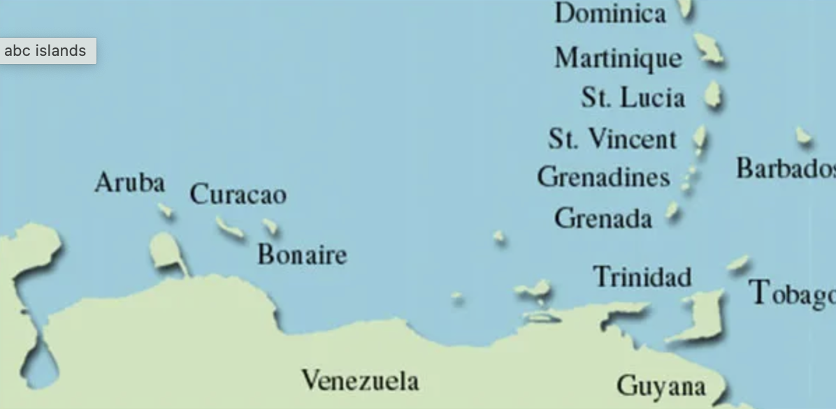 Trinidad and Tobago is just seven miles from the Venezuelan coast. Aruba is 15 miles away. Curaçao, Bonaire and Grenada are a little further.