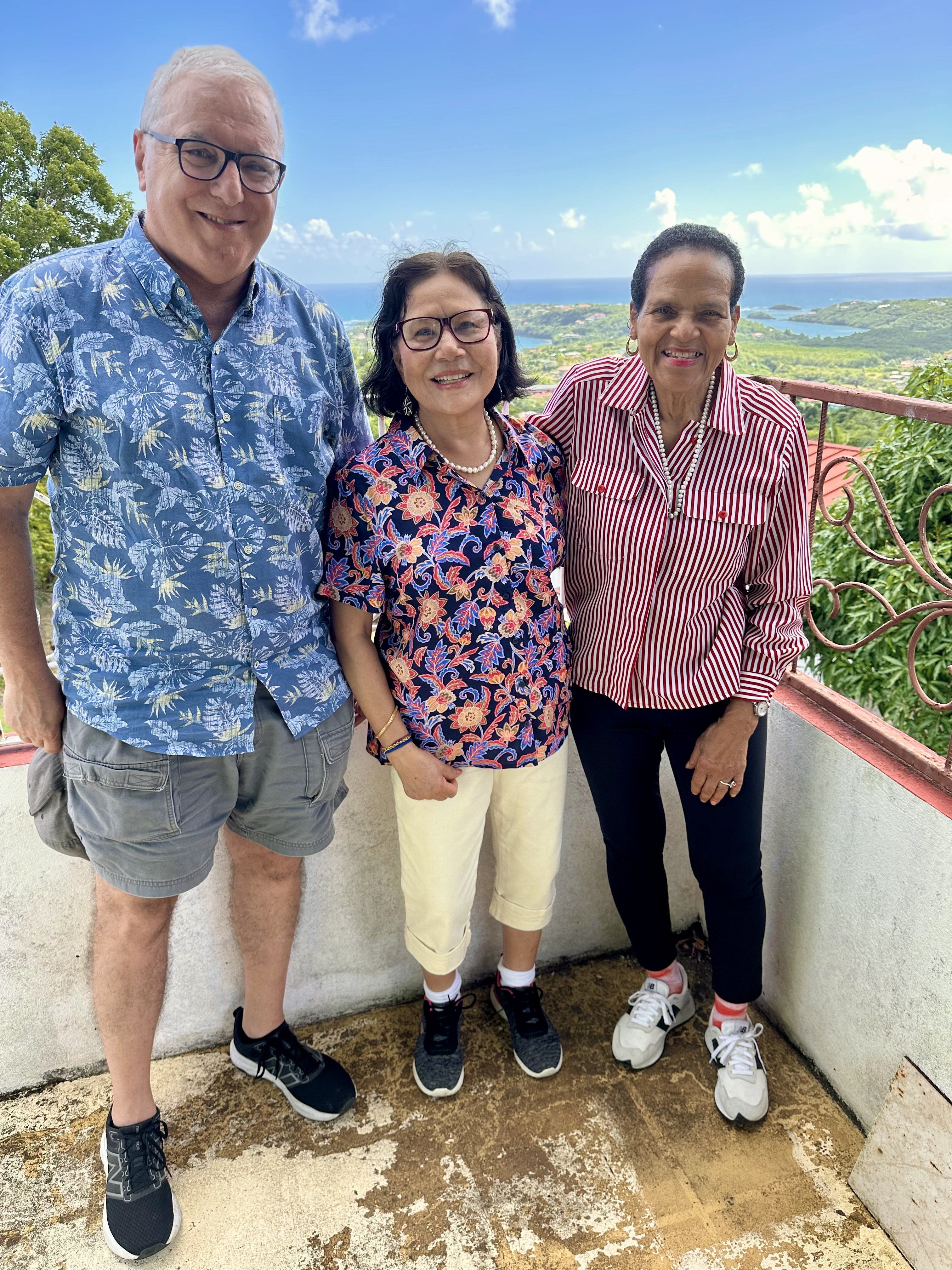 As you can see in the photo, we spent a wonderful day with our Grenadian friend Glenda. Champa worked with her in Maryland many years ago and we’ve been friends ever since. We were delighted to finally visit her beautiful Spice Island home, below, and meet her sister, Carol.