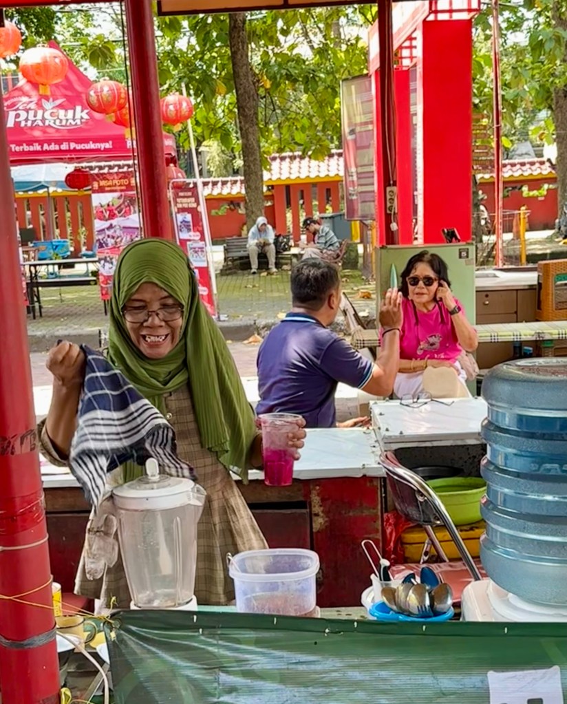 We couldn’t cross the street in Jakarta because of the traffic but we could walk safely to this neighborhood restaurant for dinner.