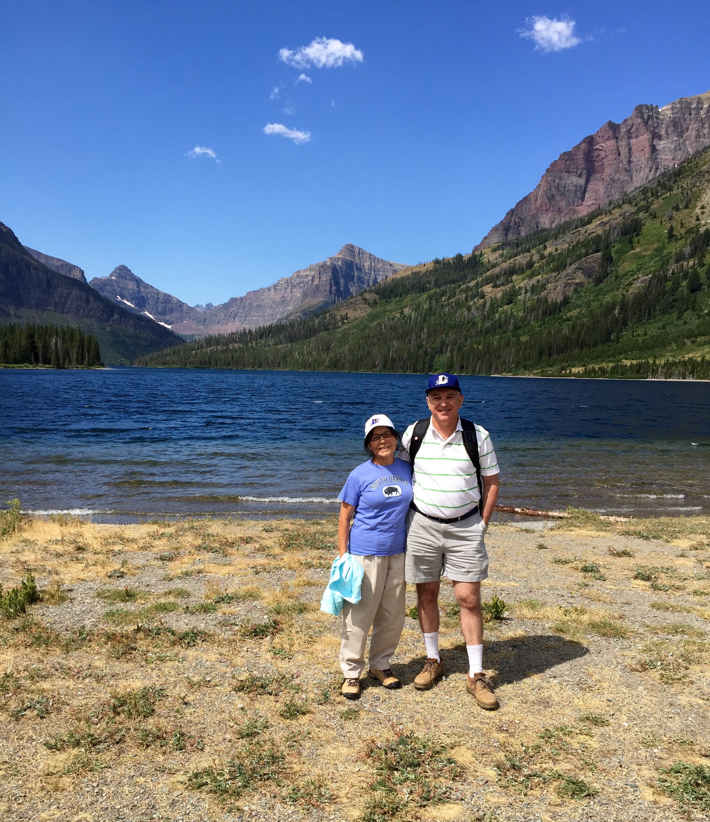 Thursday we spent much of the day in the Two Medicine area in the park’s southeast corner. That’s where we shot this photo, standing tall for our hometown team, before hiking up to a scenic overlook.