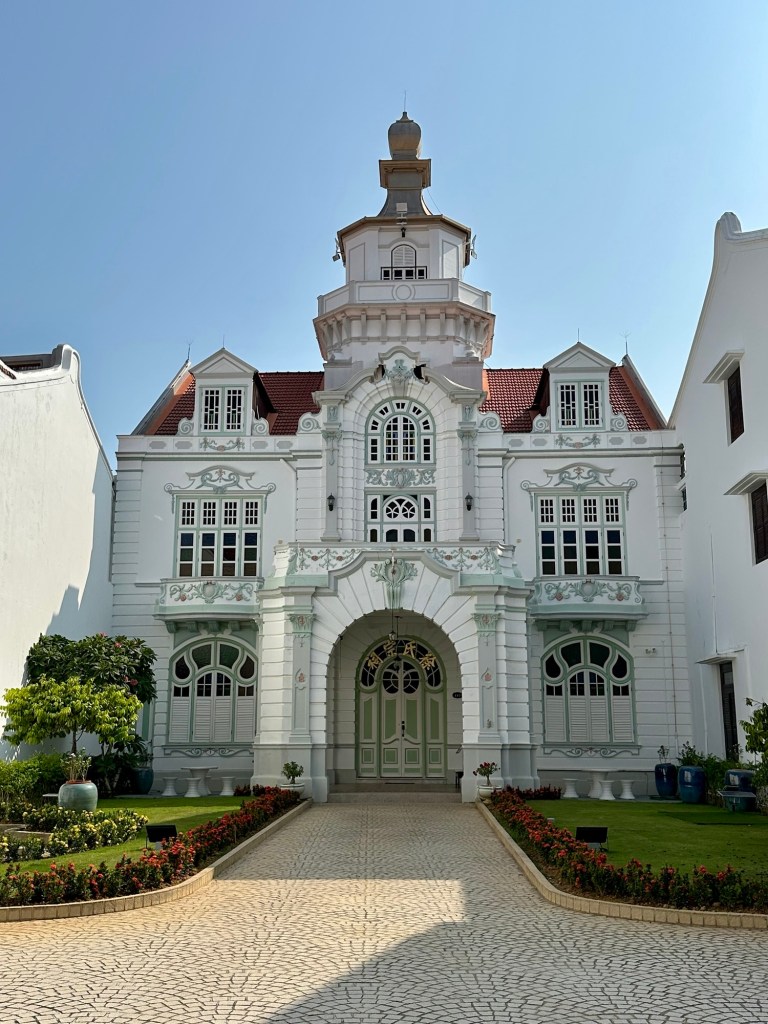 Many Malaccan traders and officials became rich. Champa and I came here on Friday and are staying in a hotel that was once the mansion of one of the wealthiest of them, Tam Kim Seng. As you can see, the building has been beautifully restored. (We had no idea of this when we booked it as a good deal online.)